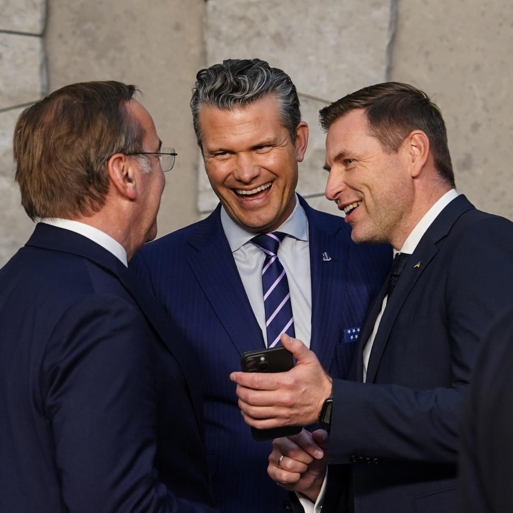 2025年10月15日,在比利時(shí)布魯塞爾舉行的北約防長(zhǎng)會(huì)議結(jié)束后,美國(guó)國(guó)防部長(zhǎng)赫格塞思(中)與愛(ài)沙尼亞國(guó)防部長(zhǎng)佩夫庫(kù)爾(右)、德國(guó)國(guó)防部長(zhǎng)皮斯托里烏斯交談。新華社記者彭子洋攝