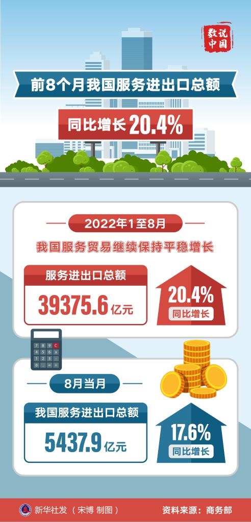 前8個(gè)月我國服務(wù)進(jìn)出口總額同比增長(zhǎng)20.4%