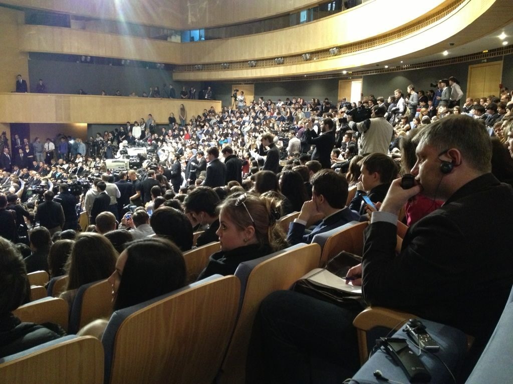 2013年3月23日,國(guó)家主席習(xí)近平在莫斯科國(guó)際關(guān)系學(xué)院發(fā)表演講時(shí),現(xiàn)場(chǎng)座無虛席。新華社發(fā)