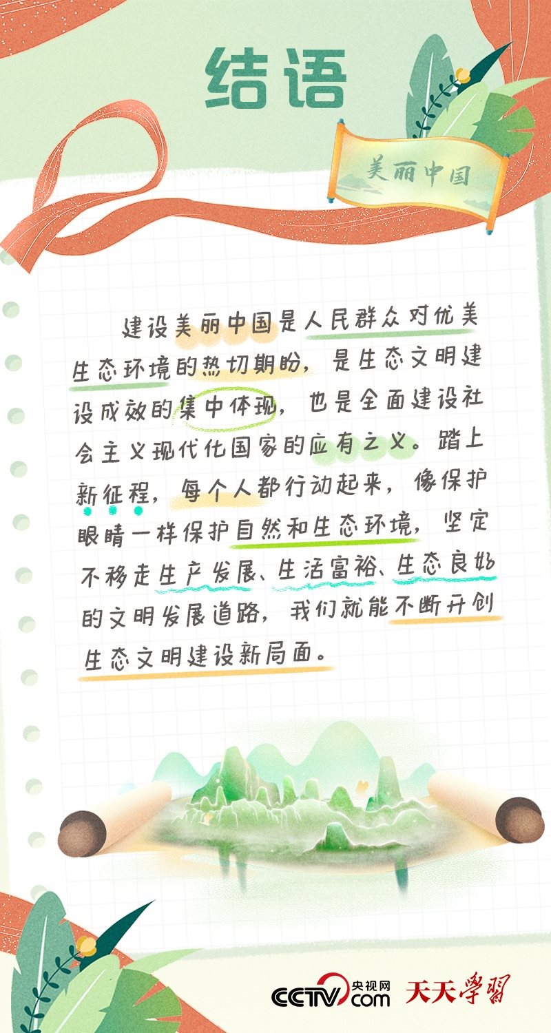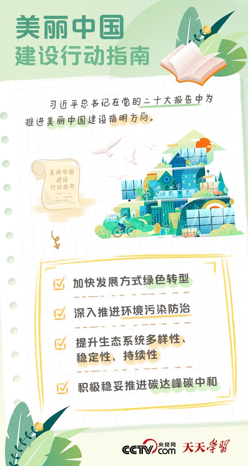 黨的十八大以來,以習(xí)近平同志為核心的黨中央以前所未有的力度抓生態(tài)文明建設(shè),全黨全國推動綠色發(fā)展的自覺性和主動性顯著增強(qiáng),美麗中國建設(shè)邁出重大步伐。黨的二十大為美麗中國建設(shè)擘畫新藍(lán)圖:我們要推進(jìn)美麗中國建設(shè),堅(jiān)持山水林田湖草沙一體化保護(hù)和系統(tǒng)治理,統(tǒng)籌產(chǎn)業(yè)結(jié)構(gòu)調(diào)整、污染治理、生態(tài)保護(hù)、應(yīng)對氣候變化,協(xié)同推進(jìn)降碳、減污、擴(kuò)綠、增長,推進(jìn)生態(tài)優(yōu)先、節(jié)約集約、綠色低碳發(fā)展。一個天藍(lán)、地綠、水清的美麗中國,漸行漸近。