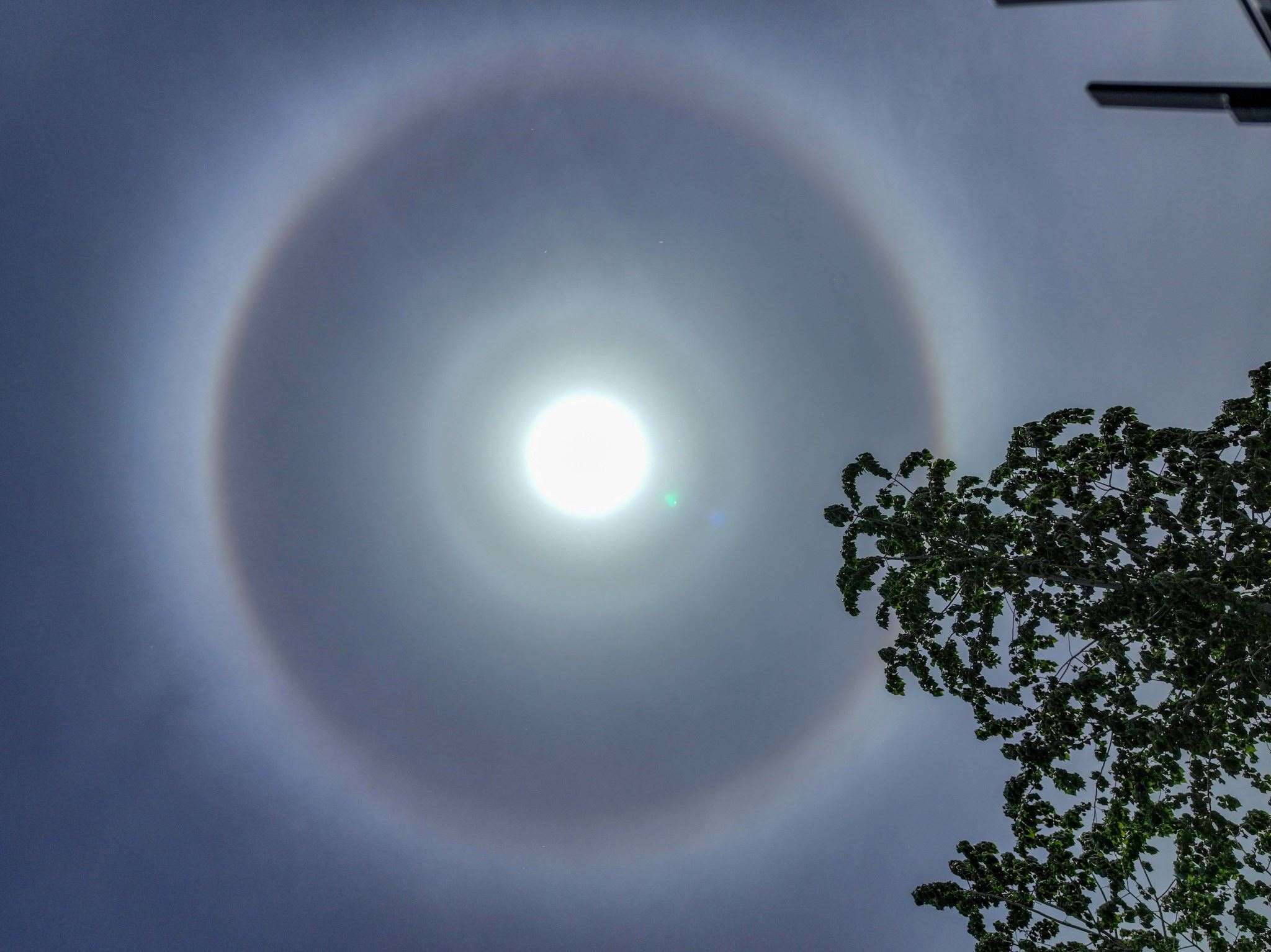 2023年4月29日,江蘇淮安,天空現(xiàn)日暈景觀。視覺中國