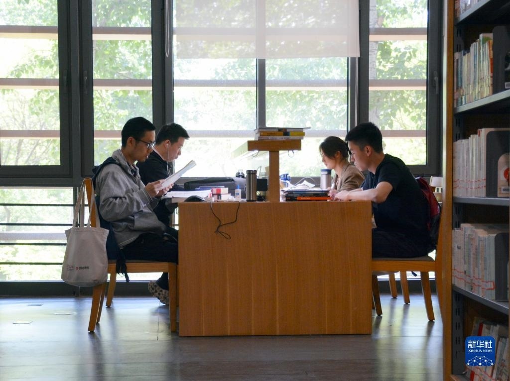 4月29日,在北京外國語大學(xué)圖書館,學(xué)生們利用假期讀書“充電”。