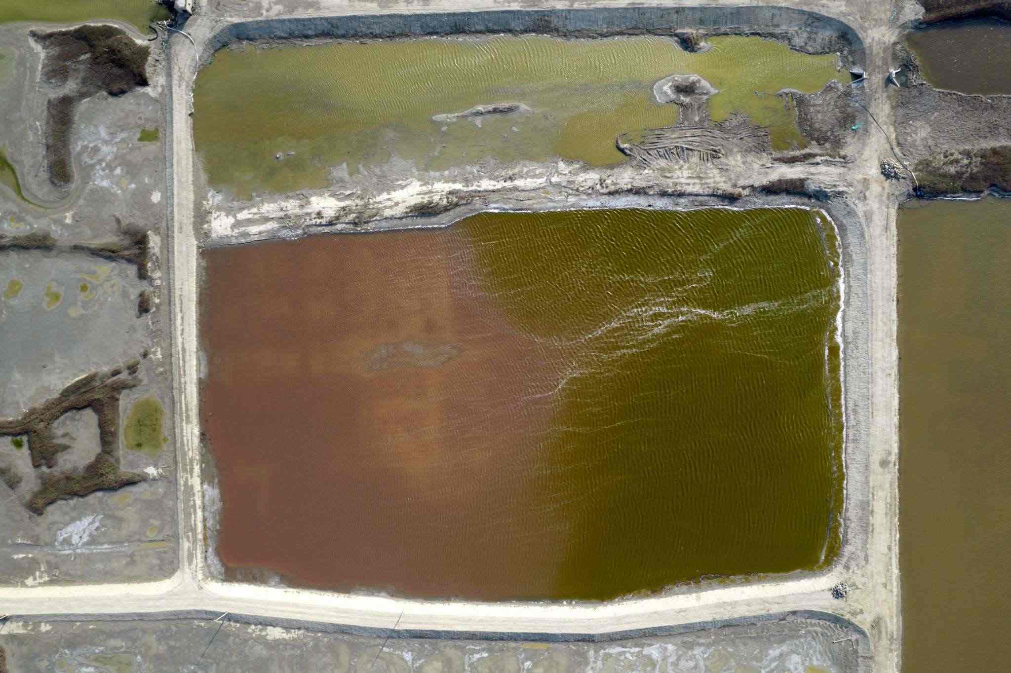 山西運城:七彩鹽湖現(xiàn)風吹波浪景觀