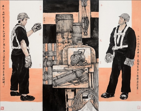 對(duì)傳統(tǒng)現(xiàn)實(shí)主義的繼承和拓展。作為一位具備卓越造型能力的人物畫家,蔡超始終堅(jiān)持深入現(xiàn)實(shí)生活,他以敏銳的觀察力和理解力,以豐富的人生閱歷不斷從生活中提煉創(chuàng)作母題,發(fā)掘常人所不易察覺的藝術(shù)趣味。因此,蔡超筆下的人物總是葆有鮮活的生命和氣息,他們不是空洞的“人民”,而是牢固與地氣相接,與時(shí)代共呼吸的真正的“人民”,他創(chuàng)造了嶄新的屬于贛鄱大地的人民形象,這是蔡超對(duì)于江西現(xiàn)實(shí)主義繪畫創(chuàng)作最重要的貢獻(xiàn)。同時(shí),蔡超不僅繼承了徐悲鴻、蔣兆和以來中國(guó)人物畫創(chuàng)作的優(yōu)良傳統(tǒng),更以“筆墨當(dāng)隨時(shí)代”的勇氣和魄力,在工業(yè)題材領(lǐng)域樹立了令人耳目一新的繪畫范式——這是一個(gè)前無古人的偉大突破。
