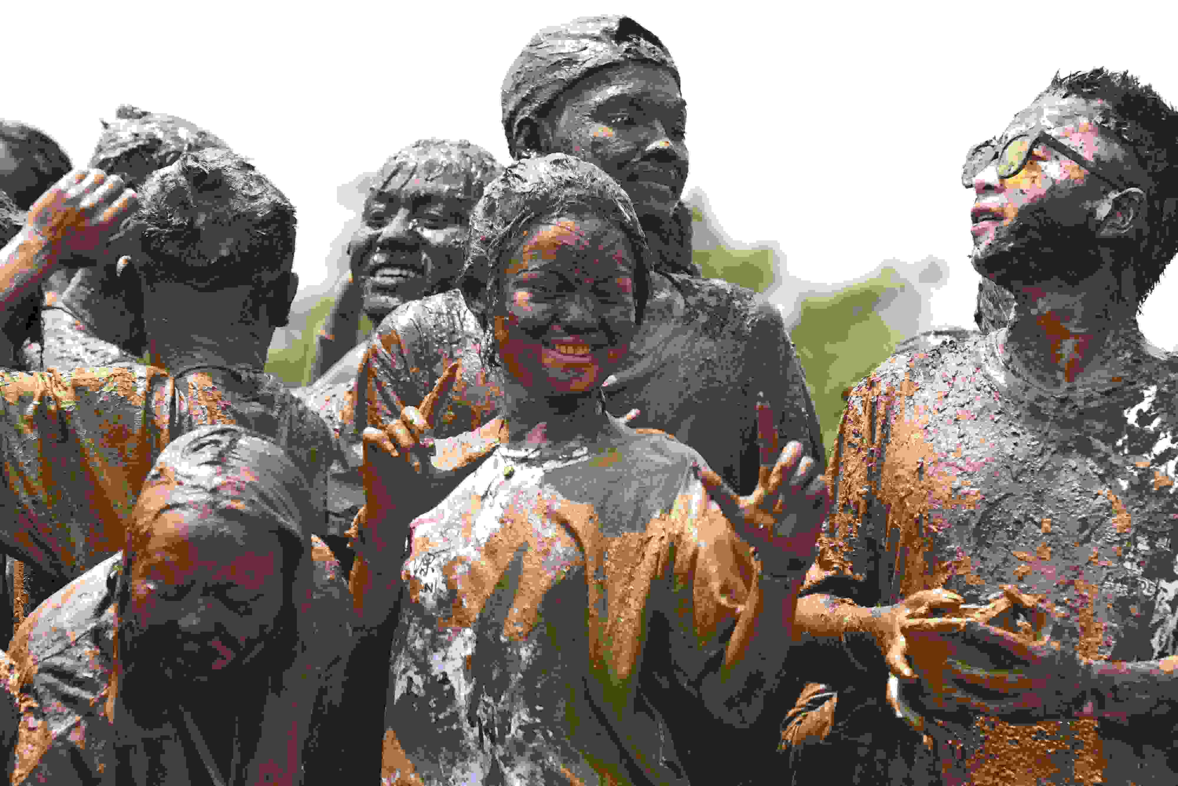 2023年4月30日,云南臨滄,游客相互抹泥表示祝福。當(dāng)日,2023年中國佤族司崗里摸你黑狂歡節(jié)在云南省臨滄市滄源佤族自治縣啟幕。人們用天然原料“娘布洛”配置而成的涂料相互涂抹表示祝福,摸得越黑,代表快樂幸福越長久。 視覺中國
