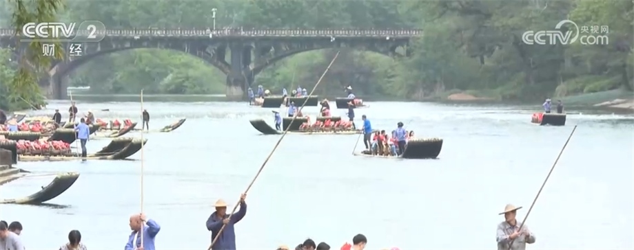 總臺記者 劉夢齡:我現(xiàn)在所在的位置是福建武夷山景區(qū)的九曲溪竹筏碼頭?!拔逡弧奔倨诘牡诙?,武夷山景區(qū)迎來了客流的最高峰,九曲溪竹筏漂流是景區(qū)里最熱門的旅游項目之一,為了更好服務(wù)游客,景區(qū)每天開行竹筏漂流12趟,最多能滿足8000名游客的需求。