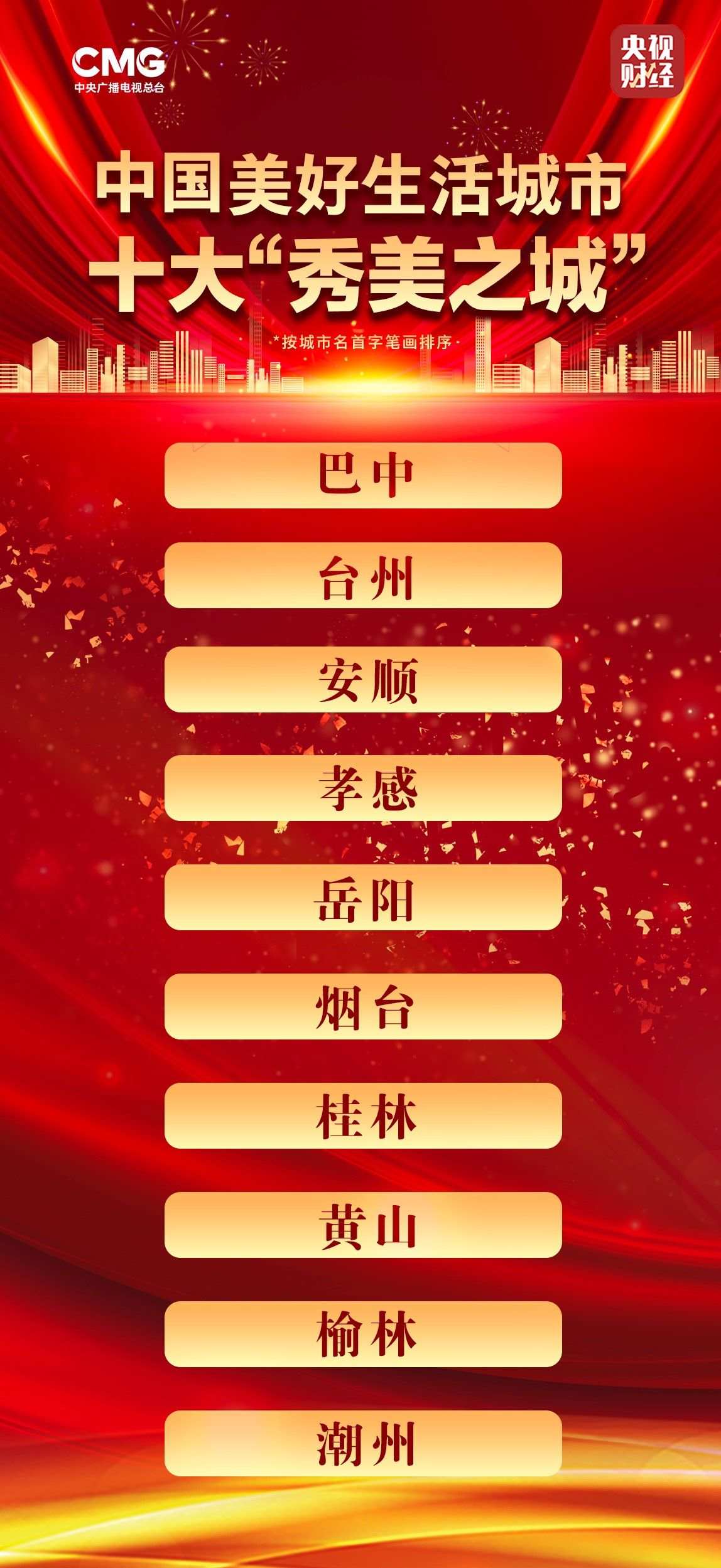 巴中、臺(tái)州、安順、孝感、岳陽(yáng)、煙臺(tái)、桂林、黃山、榆林、潮州上榜十大“秀美之城”(城市均以首字筆畫(huà)排序)。
