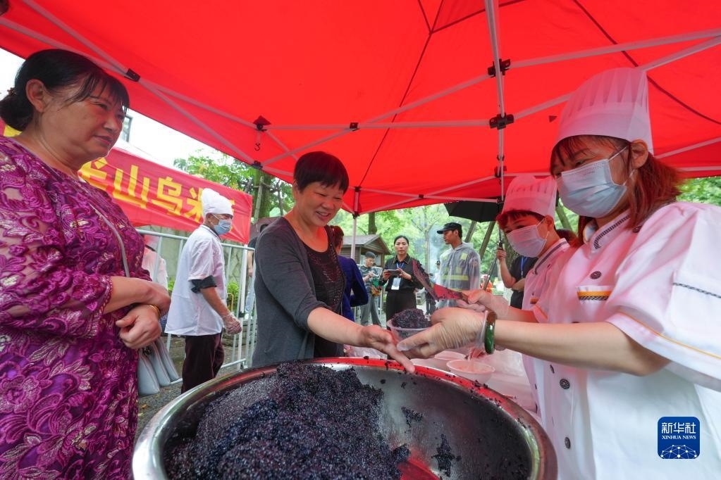 5月6日,游客在活動(dòng)現(xiàn)場(chǎng)品嘗烏米飯。   新華社記者 徐昱 攝