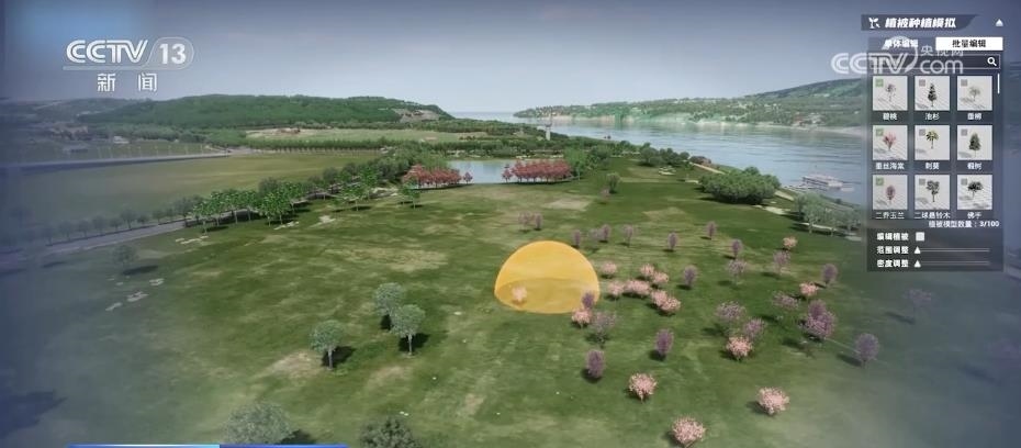 在現(xiàn)場(chǎng),工作人員給記者演示了“生態(tài)大腦”的一種特殊的推演功能。在“數(shù)字廣陽(yáng)島”上的同一片區(qū)域,先后采用兩種不同的植被種植方案,過(guò)了十幾秒,“生態(tài)大腦”就自動(dòng)推演出了10年后這片區(qū)域在不同方案下的植被樣貌。