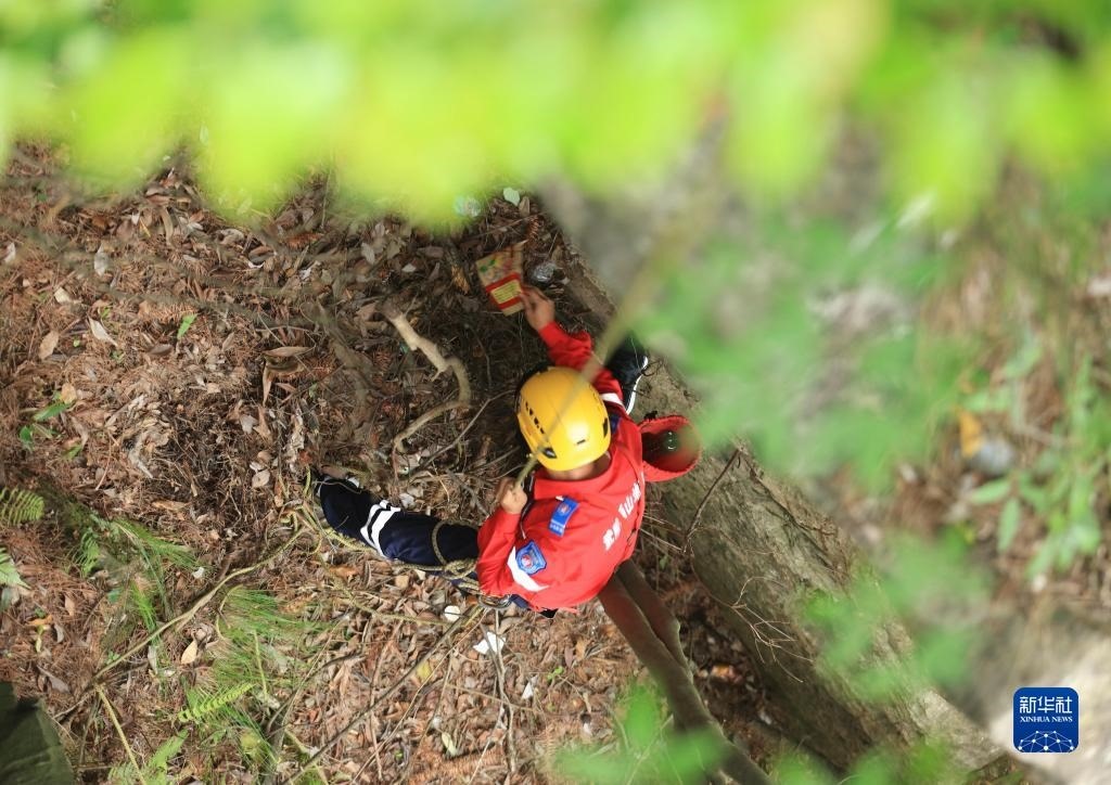 當(dāng)日,湖南省張家界市武陵源區(qū)山地應(yīng)急救援隊(duì)在天子山開展繩索救援適應(yīng)性訓(xùn)練的同時,義務(wù)撿拾叢林中的飲料瓶、塑料袋等垃圾,以實(shí)際行動保護(hù)景區(qū)自然生態(tài)環(huán)境。該救援隊(duì)自2020年成立以來,借助專業(yè)技術(shù)力量義務(wù)為各景區(qū)提供應(yīng)急救援服務(wù),并定期開展撿拾垃圾等公益活動。   新華社發(fā)(吳勇兵攝)