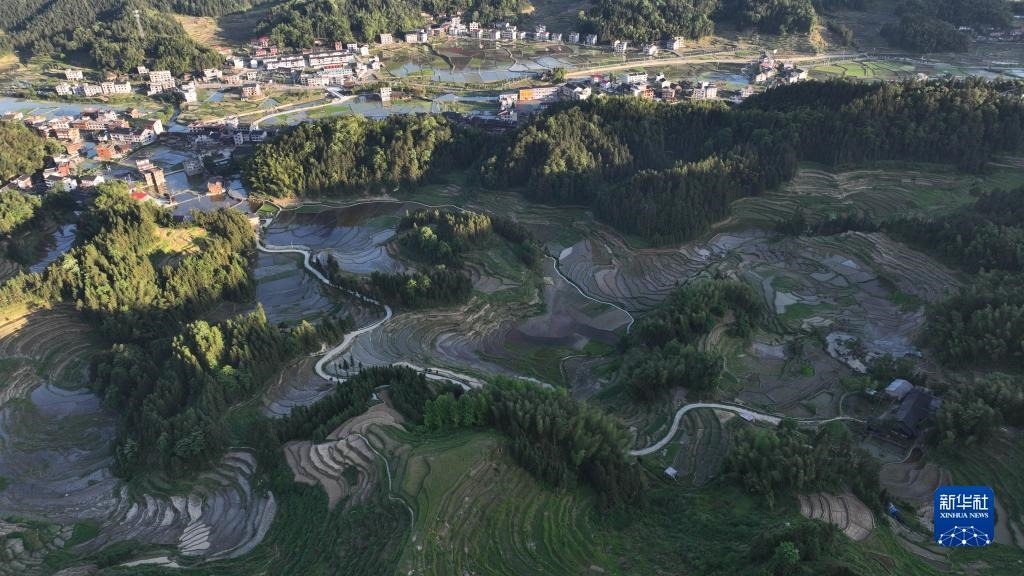 近日,湖南省婁底市新化縣紫鵲界梯田蓄水備耕,水影天光如詩如畫。新華社記者 趙眾志 攝