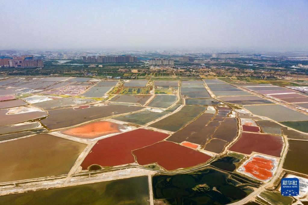 這是5月16日拍攝的運(yùn)城鹽湖一景(無人機(jī)照片)。
