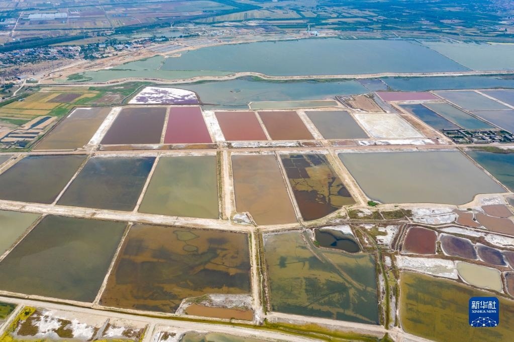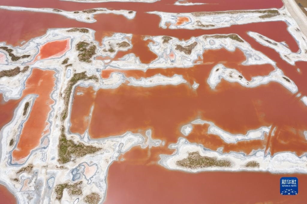 這是5月16日拍攝的運(yùn)城鹽湖一景(無人機(jī)照片)。   新華社記者 楊晨光 攝