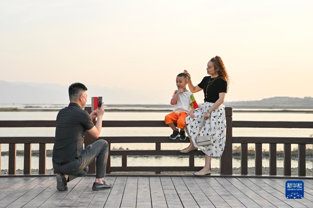 5月16日,市民在運(yùn)城鹽湖拍照。   新華社記者 楊晨光 攝