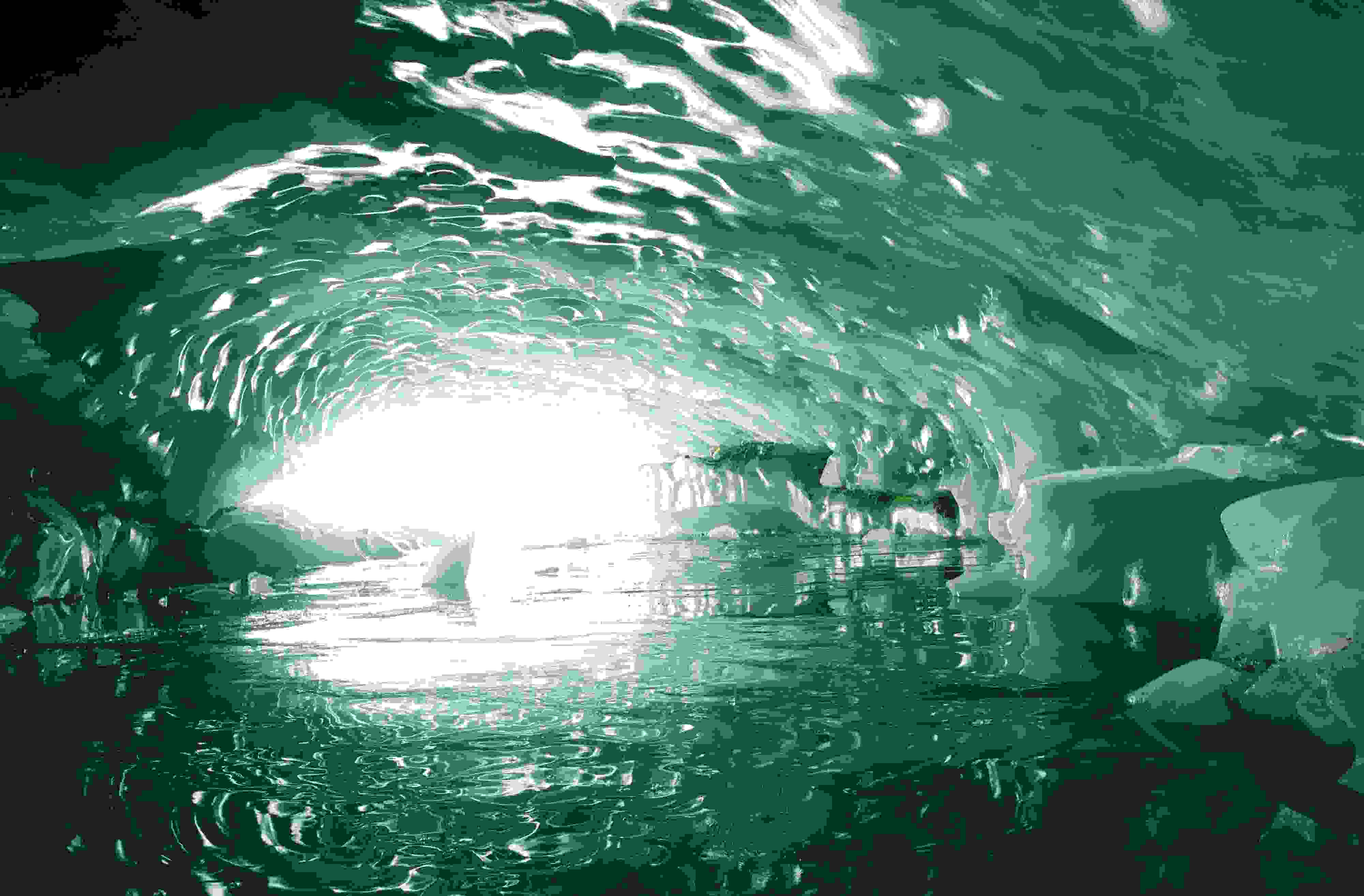 2023年5月21日,西藏昌都,游客在邊壩縣普玉一村游覽冰洞。據(jù)初步勘測(cè),貫穿的冰洞長(zhǎng)約165米、寬約26米、高約15米。呈弧拱造型的冰洞內(nèi)壁上皆是晶瑩剔透的冰柱、冰簾、冰花,其頂部呈“魚鱗”狀,在陽(yáng)光的照射下,呈現(xiàn)出夢(mèng)幻般的景象。 視覺中國(guó)