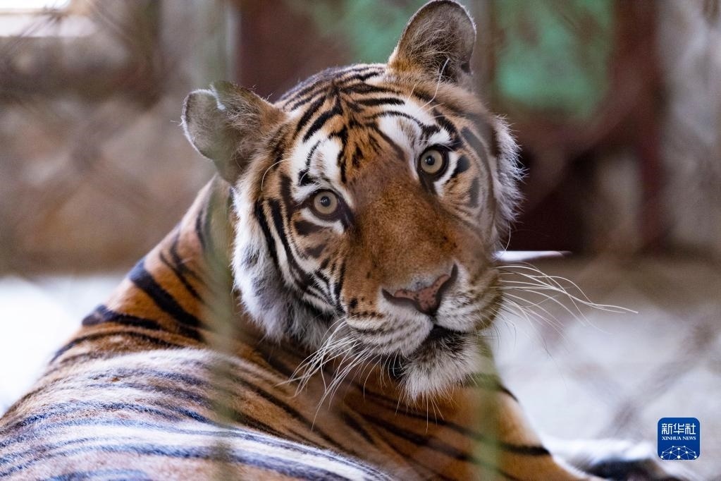 這是5月22日在黑龍江東北虎林園的虎舍中拍攝的近期已產(chǎn)崽的虎媽。   新華社記者 謝劍飛 攝