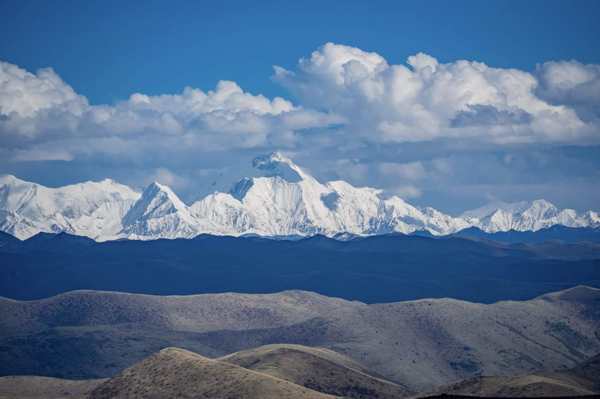 四川甘孜:魚子西觀景臺(tái)四周群山林立