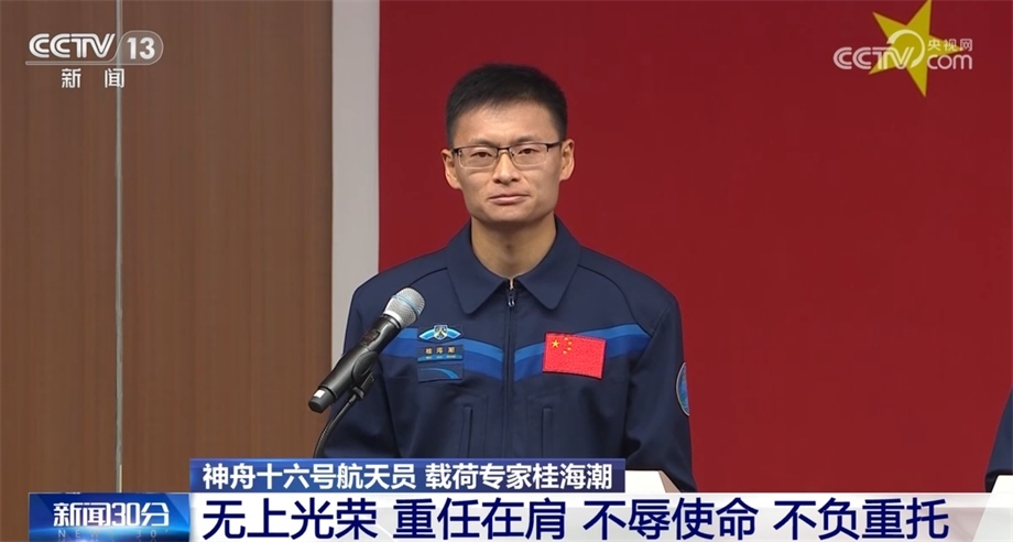 神舟十六號(hào)航天員 載荷專家桂海潮:作為載荷專家,我主要負(fù)責(zé)載荷的管理、維護(hù)、維修,從事空間科學(xué)實(shí)驗(yàn),包括實(shí)驗(yàn)設(shè)備操作,實(shí)驗(yàn)條件控制,數(shù)據(jù)收集、整理和分析。盡管我們乘組有分工,但我們是分工不分家,每一項(xiàng)操作,每一項(xiàng)任務(wù),我們都互為備份,共同完成。相信在指令長(zhǎng)的帶領(lǐng)下,在我們乘組的密切配合下,在廣大航天人的支持下,我們一定能圓滿完成使命。