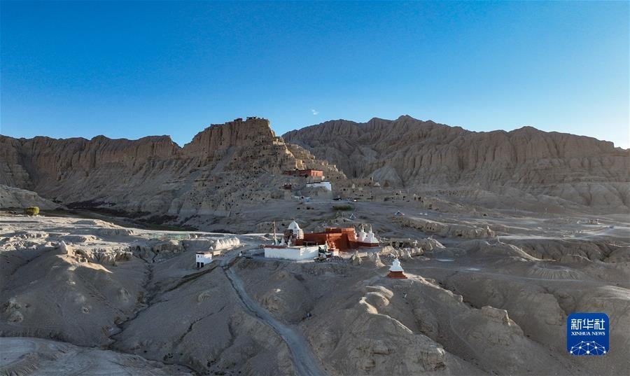 5月26日,黃昏時(shí)分的古格王國(guó)遺址(無(wú)人機(jī)照片)。   新華社記者 晉美多吉 攝