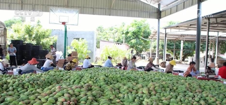 每天早上八點(diǎn)以后,新平縣漠沙鎮(zhèn)曼勒社區(qū)的芒果交易市場開始熱鬧起來。果農(nóng)將芒果運(yùn)到市場進(jìn)行售賣,空氣中彌漫著濃濃的芒果香味。在曼線村,收購點(diǎn)的芒果堆成了“小山”,包裝好的芒果整整齊齊地排列在車廂里,即將被運(yùn)送到全國市場。