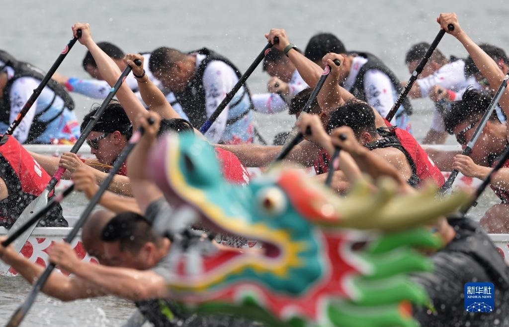 6月3日,在福建廈門集美龍舟池,來自海峽兩岸的龍舟隊(duì)競(jìng)渡爭先。   新華社記者 魏培全 攝