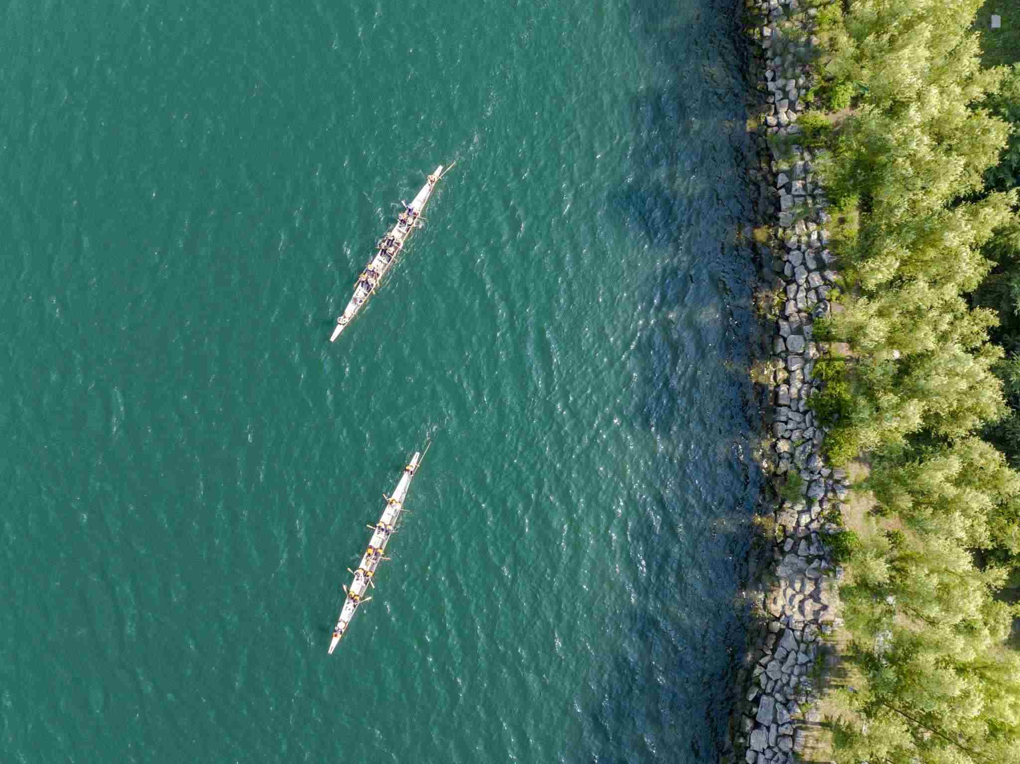 2023年6月8日,江蘇連云港,東??h西雙湖風(fēng)景區(qū),多支龍舟隊在西雙湖水域進行訓(xùn)練,積極備戰(zhàn)端午龍舟賽。視覺中國