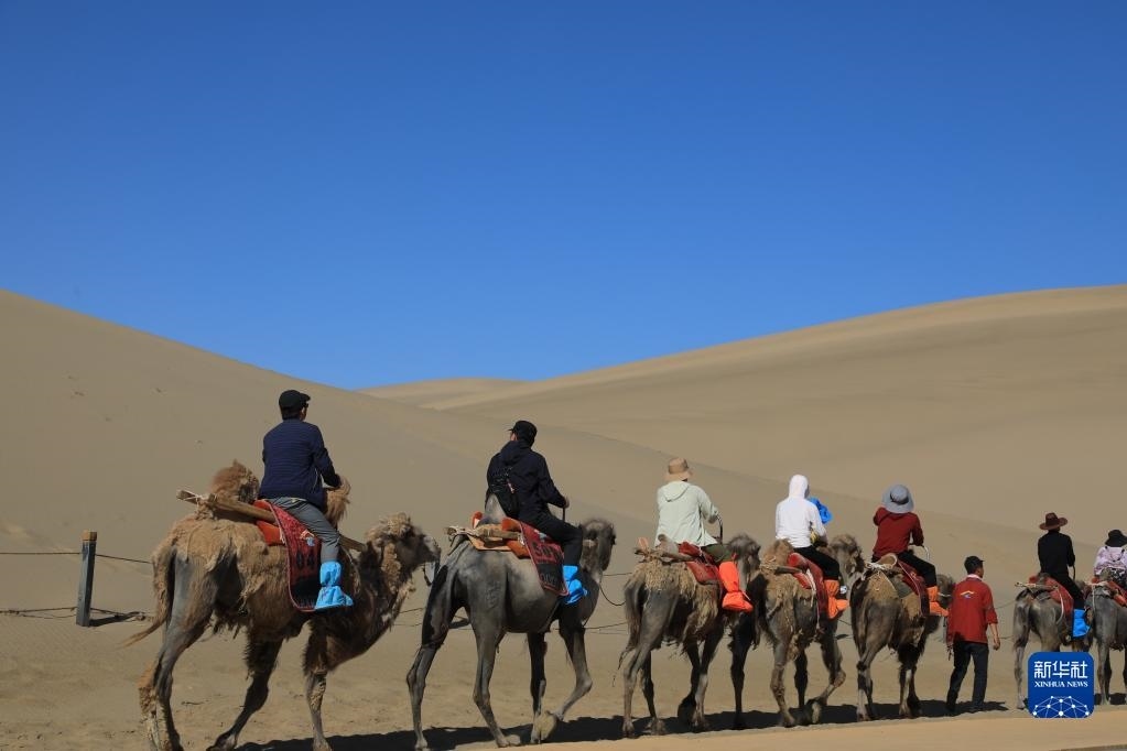 眼下正值甘肅省敦煌市旅游旺季,世界文化遺產(chǎn)莫高窟和沙漠奇觀鳴沙山月牙泉景區(qū)等地持續(xù)吸引游客前來(lái)參觀游覽。截至6月7日,敦煌市今年累計(jì)接待游客超135.5萬(wàn)人次。新華社發(fā)(張曉亮 攝)