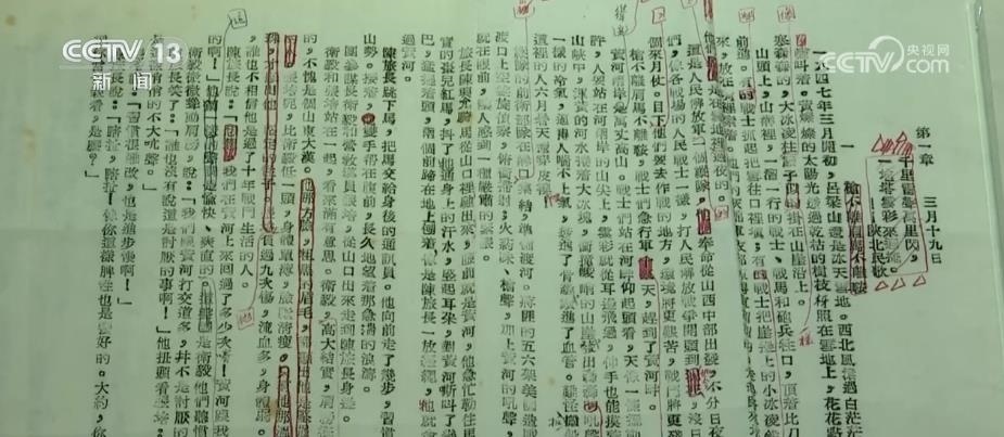 中國出版協(xié)會(huì)副理事長兼秘書長 王利明:上邊紅的字就是編輯寫的,紅的墨是助理編輯涂的,紅色下面那些字你還能看得出來,如果用藍(lán)色或黑色一畫就看不出來了。出版社編輯和作家本人、地方政府,一起經(jīng)過無數(shù)次修改,才把這本書推出來。