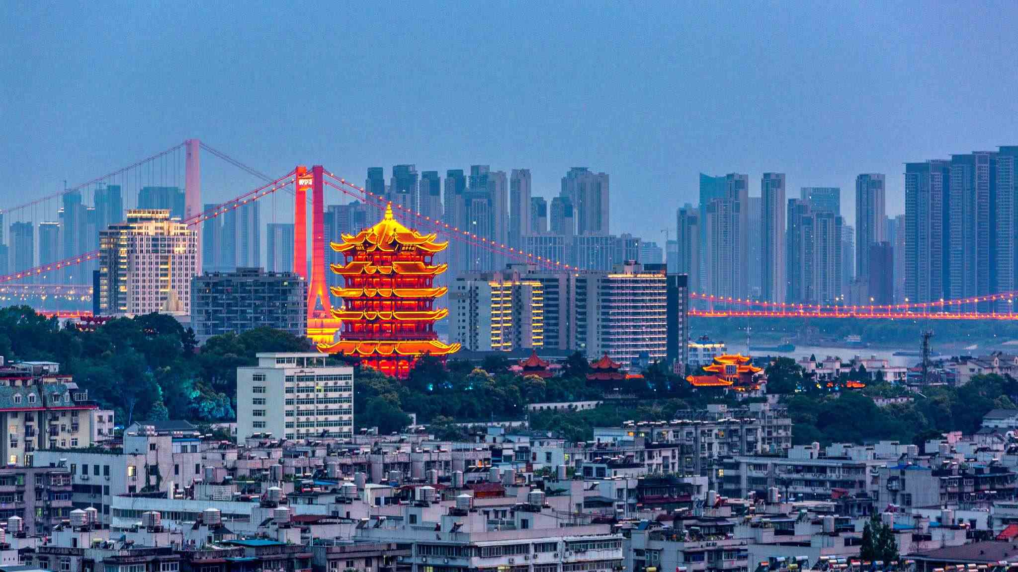 武漢:黃鶴樓與鸚鵡洲大橋同框