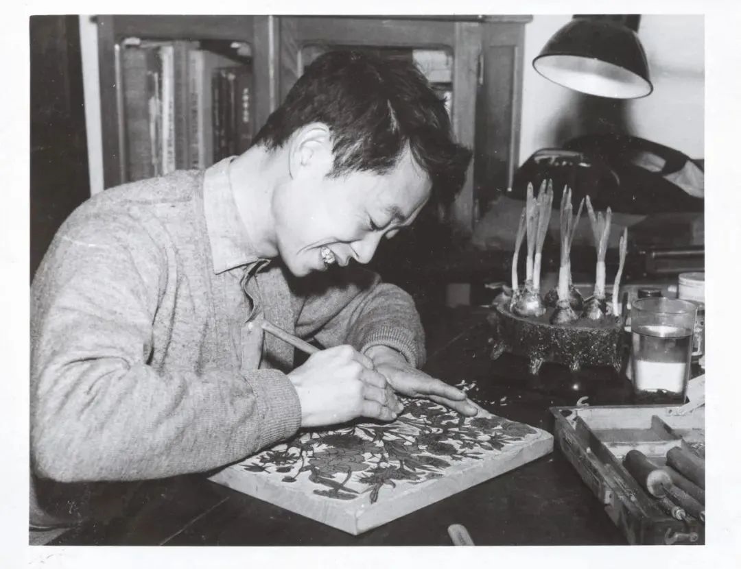 1962年黃永玉在校尉營(yíng)美院宿舍刻花卉