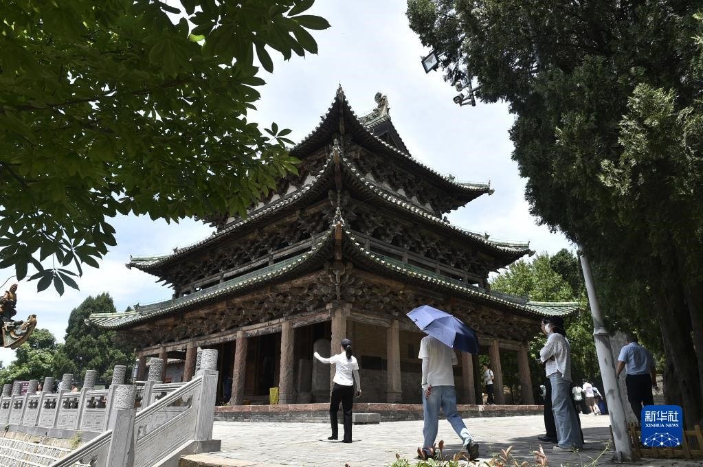 6月15日,游人在王屋山上參觀一處古跡。