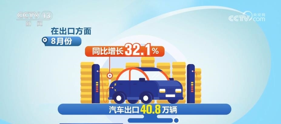在出口方面,8月份,汽車出口40.8萬輛,同比增長(zhǎng)32.1%。1月—8月,汽車出口294.1萬輛,同比增長(zhǎng)61.9%。從汽車市場(chǎng)的整體表現(xiàn)來看,1月份—8月份,我國(guó)汽車產(chǎn)銷量分別完成1822.5萬輛和1821萬輛,同比分別增長(zhǎng)7.4%和8%。
