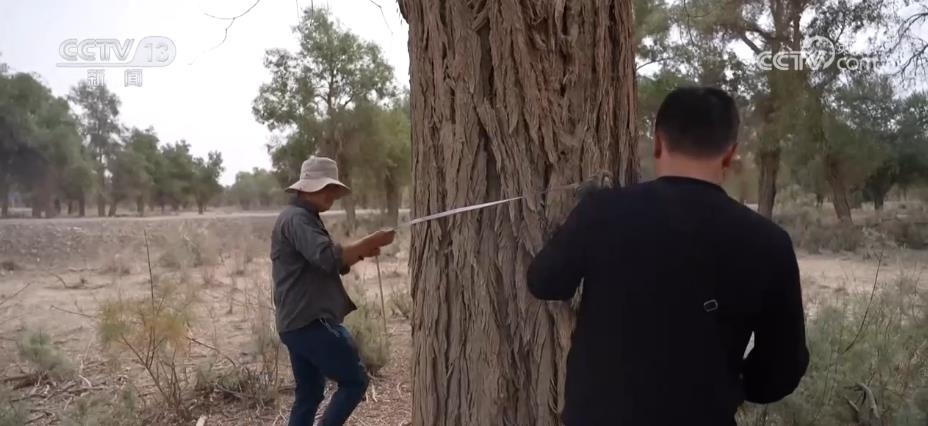 有人守護胡楊林的生長環(huán)境,也有人專門記錄胡楊樹的生長情況。在沙雅縣境內(nèi)的胡楊林里分布著很多超過百歲樹齡的胡楊樹,最近一段時間,新疆林業(yè)規(guī)劃院的科研人員正在對這里的胡楊林古樹群進行調(diào)查建檔。