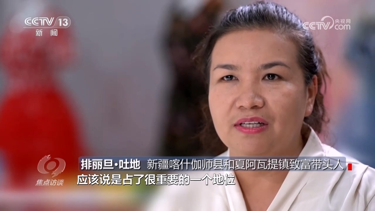 新疆喀什伽師縣和夏阿瓦提鎮(zhèn)致富帶頭人排麗旦·吐地:“資金回籠周期比較長,服裝做好以后,在我這壓放3到6個月不等,資金周轉這塊是很大的問題?!?/p>
