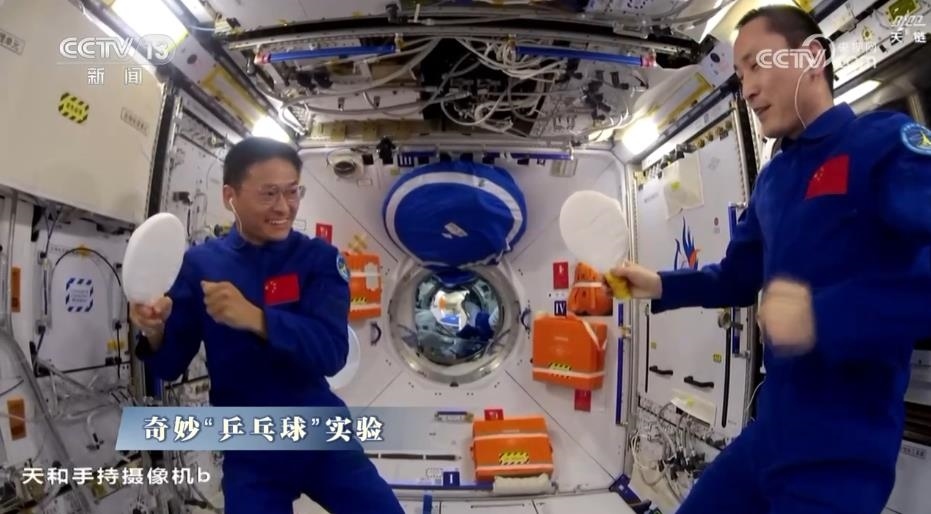地面上的火苗到了太空,變成了小絨球;太空“乒乓球賽”專用水球,竟被一口吞掉,航天員真是一滴水也不浪費(fèi);大小鋼球?qū)ε?,動量守恒的定律?fù)習(xí)到了;還有網(wǎng)友說,我女兒說了,她長大也想當(dāng)航天員。