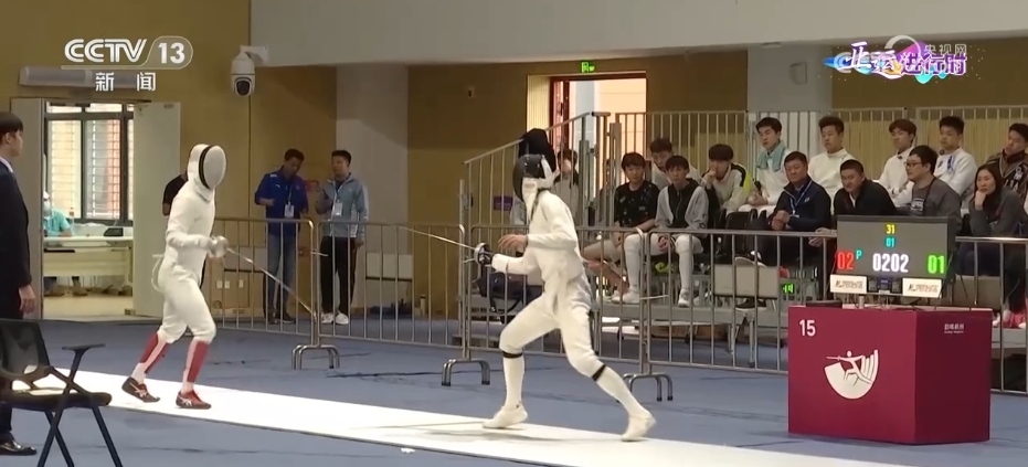 總臺記者 梁燁:擊劍是一個(gè)非常帥氣的運(yùn)動,運(yùn)動員身后為什么會有一個(gè)小“尾巴”?