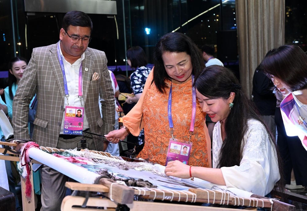 代表團(tuán)成員向中國廚師學(xué)習(xí)包餃子