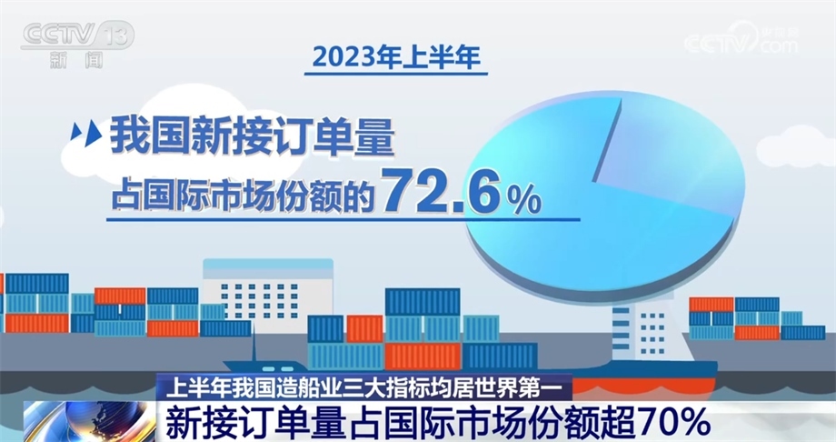 央視網(wǎng)消息:工業(yè)和信息化部今天(7月12日)發(fā)布我國造船業(yè)最新數(shù)據(jù),上半年我國造船業(yè)三大指標均位居世界第一;新接訂單量的國際市場份額超過了70%,實現(xiàn)了我國造船業(yè)國際市場新接訂單量的新紀錄。?