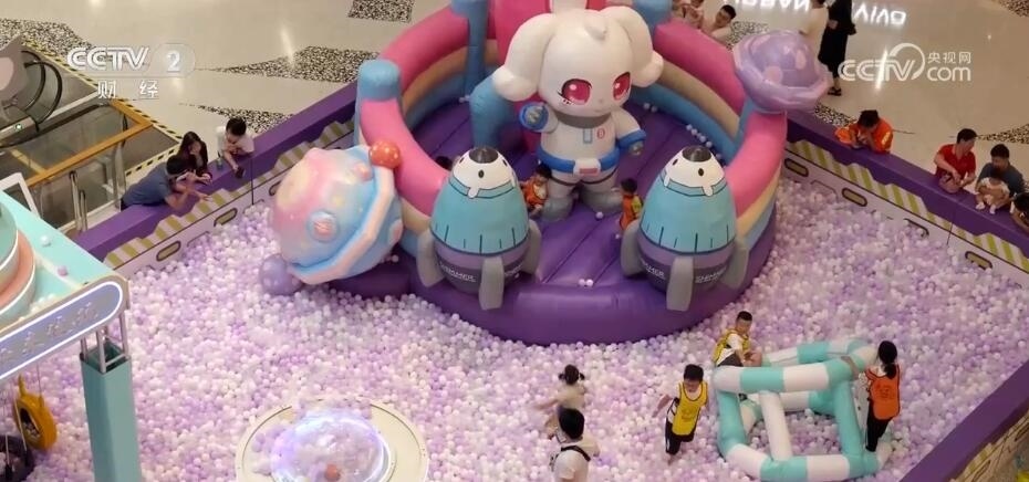 上海某商場運營經理 趙佳麗:我們會在暑假檔的時候,在中庭引入一些比較熱門的IP(知識產權)游玩設施。另外,因為三樓是兒童業(yè)態(tài),所以全年都會安排一些固定的互動點來供周邊的家庭游玩。