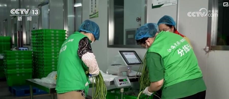 農(nóng)戶增收得益于當(dāng)?shù)匾劳袊Y部門搭建的農(nóng)產(chǎn)品集采平臺。兩年前,錫祥村的農(nóng)產(chǎn)品合作社入選集采平臺,將分散的土地進行科學(xué)、統(tǒng)一規(guī)劃,邀請農(nóng)機部門定期指導(dǎo),嚴把質(zhì)量關(guān),甘藍菜、有機花菜、冬瓜、茄子等當(dāng)季的新鮮綠色蔬菜,每天穩(wěn)定地供應(yīng)到集采平臺的倉儲中心,經(jīng)過質(zhì)檢、簡單加工、凈菜、分包等環(huán)節(jié),再通過冷鏈配送到全區(qū)200多家飯店、商超和食堂。
