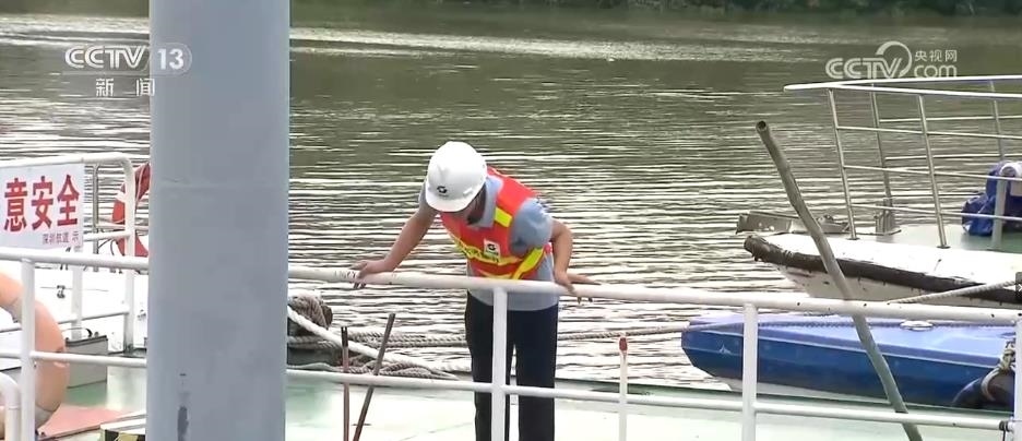 在深圳河皇崗碼頭段,水務(wù)部門的工作人員正在進(jìn)行臺風(fēng)前的巡查工作。臺風(fēng)來臨前,河流船只必須全部回港避險并進(jìn)行加固處理,沿河的各項(xiàng)工程必須停工。