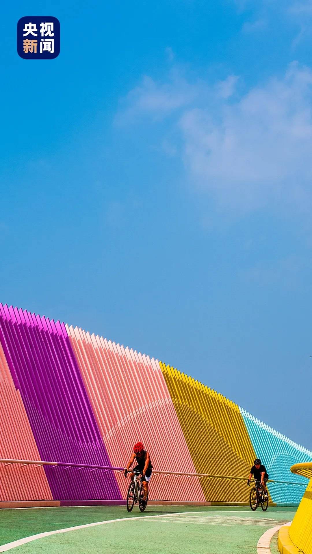你能想到嗎?環(huán)城綠道時不時會迎來堵車高峰。男女老少騎著共享單車、公路車、折疊車,在坡道上兜風(fēng),觸摸城市肌理,體味煙火氣。