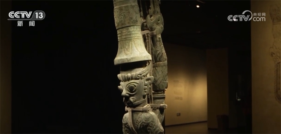 北京大學(xué)考古文博學(xué)院副教授 趙昊:為什么我們不直接把這件器蓋放在這個(gè)尊之上,或者包括那個(gè)持龍人像放在器蓋之上,這涉及到一個(gè)文物安全的問(wèn)題。因?yàn)橄鄬?duì)來(lái)說(shuō)這些器物本體已經(jīng)有一些變形,第二就是它長(zhǎng)期埋在地下,本體已經(jīng)變得比較疏松了,如果我們將它原來(lái)整體復(fù)原蓋在一起,重量會(huì)很大,可能對(duì)于下面的支撐壓迫比較重。