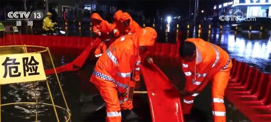 雨夜里的“排澇人”堅(jiān)守崗位 減少道路積水對(duì)出行影響