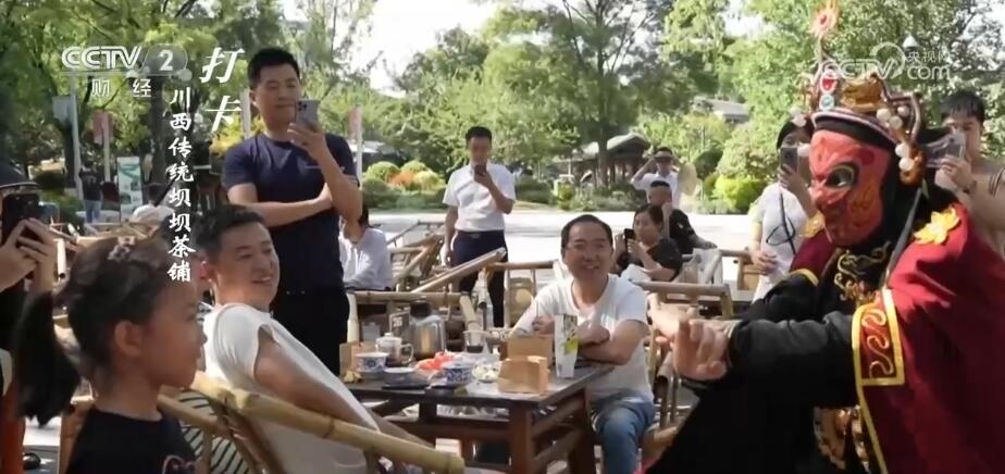 成都臺記者 劉然然:打卡中國消費新地標,今天我來到了位于四川成都高新區(qū)的鐵像寺水街。今天第一項,我們來打卡鐵像寺水街的川味元素。在我身后這個古香古色的戲臺,不定期就會有川劇、變臉、茶藝等表演,花上十幾塊錢泡碗茶,就能在這里享受一天的安逸生活。