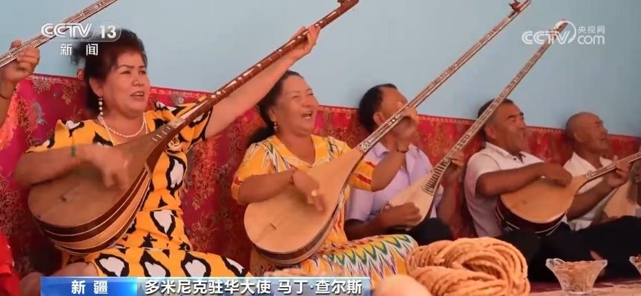 駐華使節(jié)們走進喀什古城的街市巷陌,感受當?shù)鬲毺氐拿褡逦幕?;在克孜爾千佛洞,領略跨越千年的石窟藝術(shù);來到新疆民間手工樂器制作第一村庫車市新和縣加依村,同當?shù)匕傩找黄疠d歌載舞;觀看非遺項目十二木卡姆等一系列活動,讓使節(jié)們感嘆,新疆少數(shù)民族傳統(tǒng)文化和生活習俗得到了充分保護。