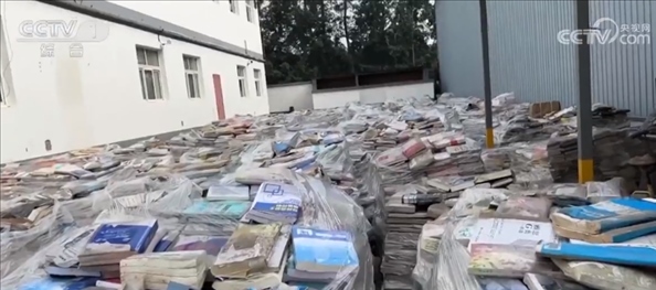 書商 鄒斌:對,要銷毀的。里面有一些滋生的細(xì)菌,也不能再讀了。你們走慢點,這個(地面)很滑。