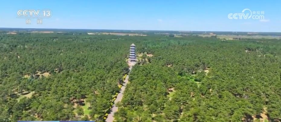 如今,在曾經(jīng)風(fēng)沙最嚴(yán)重的彰武縣章古臺(tái)鎮(zhèn),記者登上瞭望塔遠(yuǎn)眺,映入眼簾的是綠意盎然綿延不斷的萬畝“林?!币恢变佌沟教爝叀,F(xiàn)在,這片防護(hù)林帶猶如一條綠色的屏障,有效阻隔了科爾沁沙地南侵,形成了“以樹擋沙”的治沙模式,也造就了大漠“林?!钡钠嬗^。