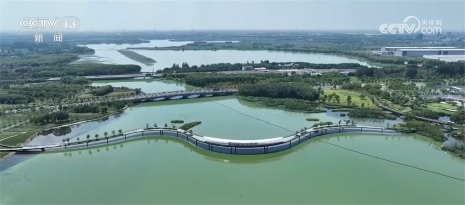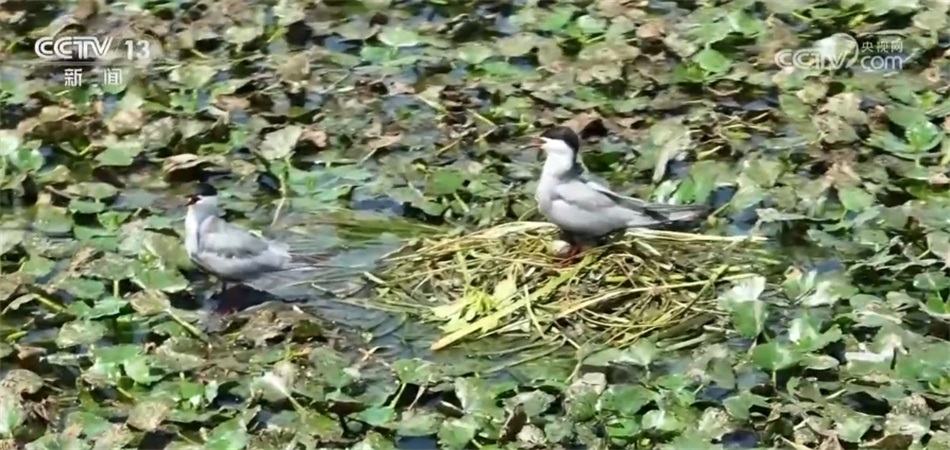 比如,兩地工作人員實(shí)現(xiàn)了聯(lián)合巡河、管護(hù)、治理。元蕩湖生態(tài)岸線的相關(guān)建設(shè),包括我所在的這個(gè)公園和步行橋也是兩地統(tǒng)一審批、接力建設(shè)起來(lái)的。目前,元蕩湖水質(zhì)已經(jīng)達(dá)到國(guó)家考核目標(biāo),生態(tài)岸線占比超過(guò)80%。在湖心的位置有一處水草聚集區(qū)域,船是不會(huì)靠近的,這是人為劃定的水上鳥(niǎo)兒的保育區(qū),能看見(jiàn)不少水鳥(niǎo)在那里嬉戲飛翔。鏡頭拉近,有的鳥(niǎo)兒已經(jīng)在這里筑巢產(chǎn)卵,把家安在了元蕩湖,水質(zhì)好不好,鳥(niǎo)兒最有發(fā)言權(quán)?,F(xiàn)在,元蕩湖在水系連通、河道清障、岸坡整治、水源涵養(yǎng)等方面實(shí)現(xiàn)了統(tǒng)一推進(jìn)。