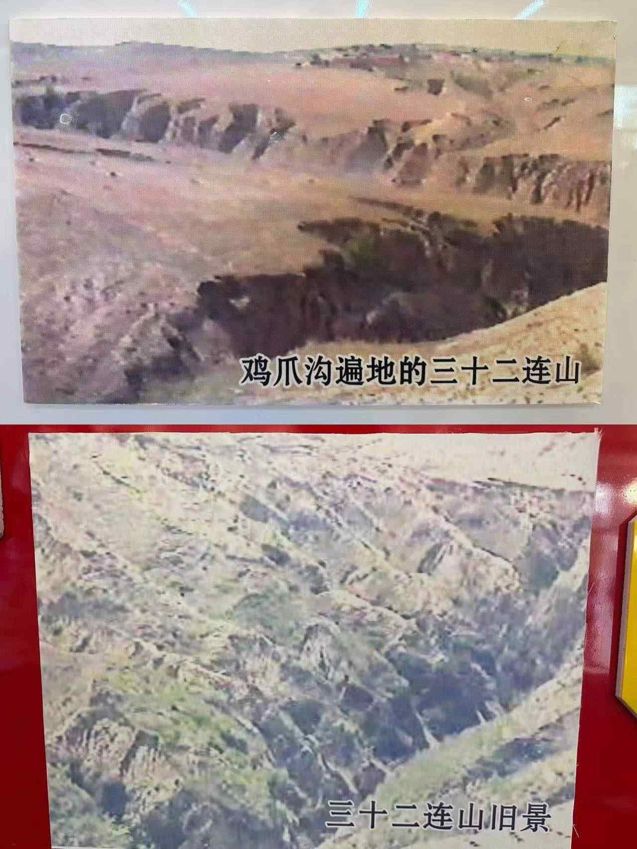 曾任三十二連山小流域綜合治理工程總指揮的韓旭東回憶說,這里曾經(jīng)黃沙漫天、洪水泛濫,刮起風(fēng)沙,白天能見度極低,一場風(fēng)沙能把剛長起來的苗蓋死,是典型的“禿山光嶺干河套,牛羊啃草滿山繞”。